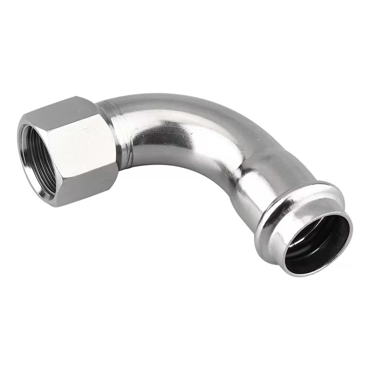 Double Clamp 90 Degree Internal Thread Conversion Elbow ከውስጥ ክሮች ካላቸው አካላት ጋር በሚገናኝበት ጊዜ የቧንቧ መስመር ላይ የ90 ዲግሪ የአቅጣጫ ለውጥ የሚያመጣ ልዩ ፊቲንግ ነው። በሼንቺ ፋብሪካ የሚመረተው ምርት በተለይ በቀላሉ በመጫኑ የሚታወቅ ነው። ከማይዝግ ብረት የተቀናጀ ፎርጂንግ በመጠቀም የተሰራ ነው። አንደኛው ጫፍ ከቧንቧዎች ጋር ለማገናኘት አንድ የፕሬስ ተስማሚ በይነገጽን ያሳያል, ሌላኛው ጫፍ ትክክለኛ የውስጥ ክሮች ያሉት ሲሆን ይህም እንከን የለሽ መለዋወጥ እና ከተለያዩ አይነት ክፍሎች ጋር ግንኙነት አለው. ምንም ብየዳ ያስፈልጋል; ልዩ መሣሪያን በመጠቀም በአንድ ፕሬስ-ፊጥ የተጠበቀ ነው። የማተሚያው መዋቅር ጥብቅ ነው, ፍሳሽን ይከላከላል, እና ከፍተኛ ጫና እና ዝገትን ይቋቋማል. እንደ የውሃ አቅርቦት፣ የፍሳሽ ማስወገጃ እና ኤች.አይ.ቪ.ሲ. ውጤታማ የሆነ ተከላ እና ምቹ የኋለኛ ደረጃ ጥገናን ያቀርባል, ለቧንቧ መስመር አቅጣጫ ለውጦች እና ሽግግሮች የተረጋጋ መፍትሄ ይሰጣል.